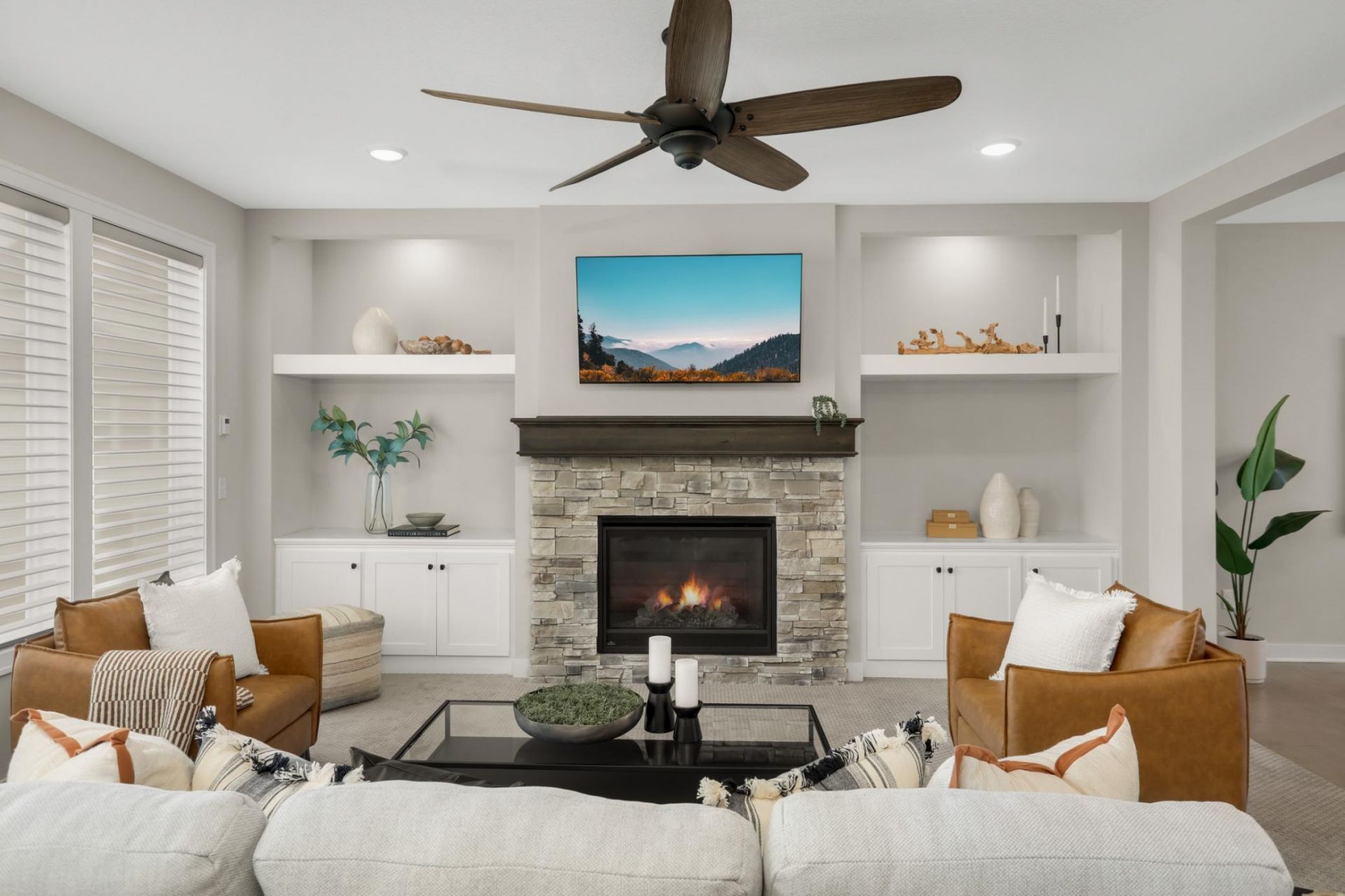 Experience elevated living in this stunning Lakeshore Preserve executive Hanson Builders home, where luxury meets thoughtful design. The open-concept main level features fantastic floorplan, expansive windows, rich flooring, and a sun-filled living room with a gas fireplace and custom built-ins. The chef's kitchen shines with quartz countertops, custom cabinetry, double ovens, gas cooktop, oversized island, and walk-in pantry. Enjoy formal and informal dining, plus a main-level office, mudroom, and powder bath. Upstairs offers a versatile loft, four bedrooms (one w/private bathroom), and a serene primary suite with spa-like bathroom, soaking tub, dual vanities, and a spacious walk-in closet with nearby laundry. The finished lower level includes a large family room with home theater, hobby space, fifth bedroom, bath. Complete with a maintenance-free deck, fenced yard, heated garage, and access to trails, pool, park, and Gonz Lake.
